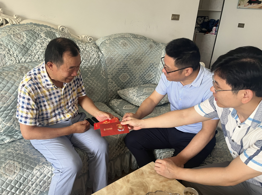 7月1日,金延安带领教工支部书记及党政办主任,携带慰问金和工会会员两节(端午节、中秋节)物资卡,走访慰问困难党员邹绍华。在邹绍华家中,金延安与他进行亲切交谈,详细了解他的健康状况、家庭生活以及目前面临的困难,并鼓励他保持坚强和乐观的态度,积极面对生活中的挑战。