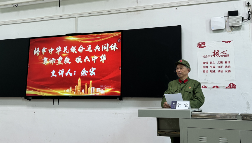 会上,余宏同志以自身丰富的军旅生涯和深厚的爱国情怀,向在场师生生动讲述了中华民族的辉煌历史和伟大复兴的中国梦。他通过分享英雄故事、回顾革命历程,激励学生们要铭记历史、珍惜当下、展望未来,积极投身到实现中华民族伟大复兴的事业中去。