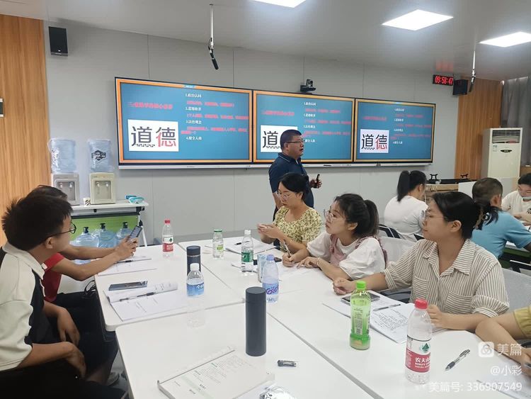 2023年8月8日咸宁市农村小学学科骨干教师培训小学道法,beat365官方网站师范学院、教育学院院长邹强院长介绍主讲教师,上午道德与法治的课“道”与“法”在教6-201教室授课由深圳高级中学正高级付步雄老师授课,付老师从课前互动、一些感悟聊起、德育工作十大难点、重温学科核心素养、说说教学逻辑、说说教学课型、我的教学实践,最后运用到跟着语文学党史的PPT教学,让我受益匪浅。