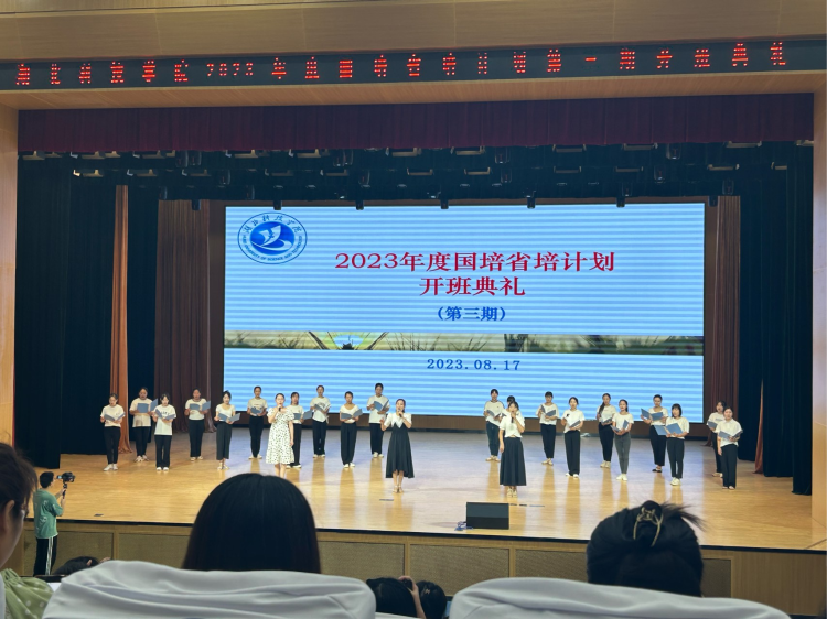 开班典礼尾声,培训教师集体庄严宣誓,合唱教师之歌。