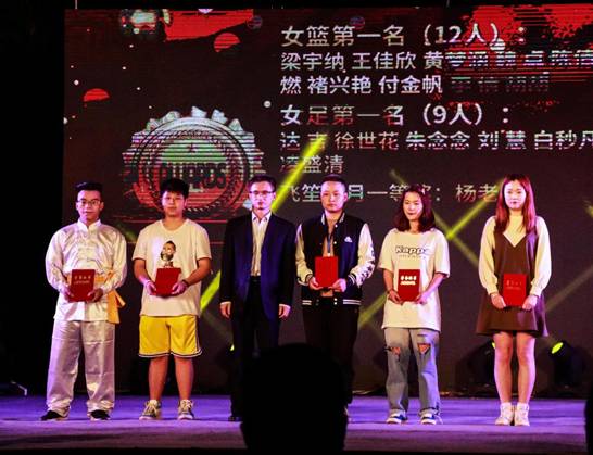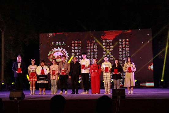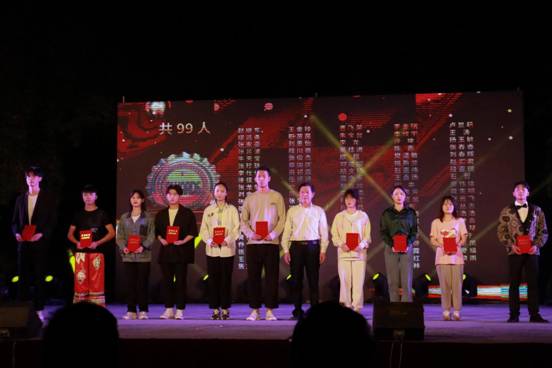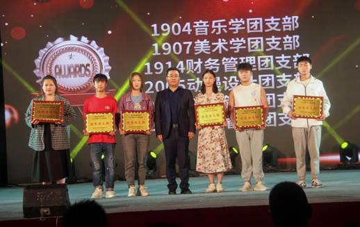 在节目精彩进行中,钟副校长和各部门领导为先进集体、优秀团支部、优秀班干部、优秀文体学生、奖学金获得者分别颁奖并合影留念。