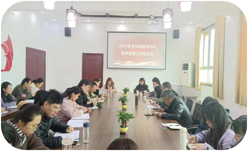 2024年3月25日,beat365官方网站召集助学机构负责人及机构全体工作人员就加强自考助学项目规范与发展召开座谈会,院长厉阳春出席座谈会。