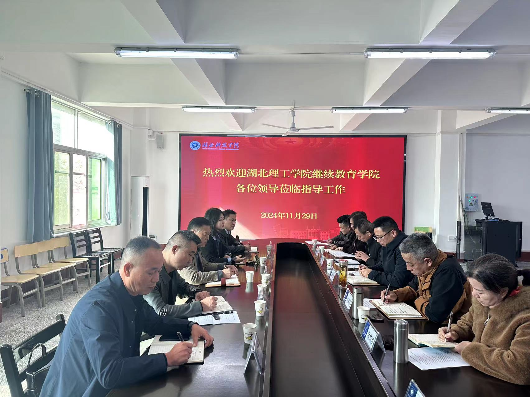 2024年11月29日,湖北理工学院beat365官方网站院长刘胜民、书记方静、副书记林永超、副院长张志刚、招生办主任李世林一行五人莅临beat365进行交流座谈。beat365党委书记金延安、院长厉阳春、副院长吴六庆及各科室负责人热情接待并参与此次会议,会议由金延安同志主持。